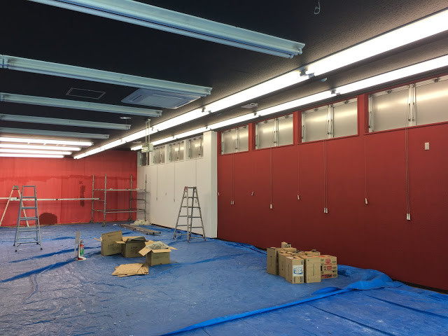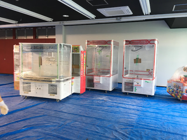 店内の仕上げが進み雰囲気が変わってきました。今日は自動販売機設置作業です。自動販売機は重量が重く高額な商品なので慎重に慎重に搬入します。明日はいよいよゲーム機の搬入です!開店まで着々と準備が進行しております!
